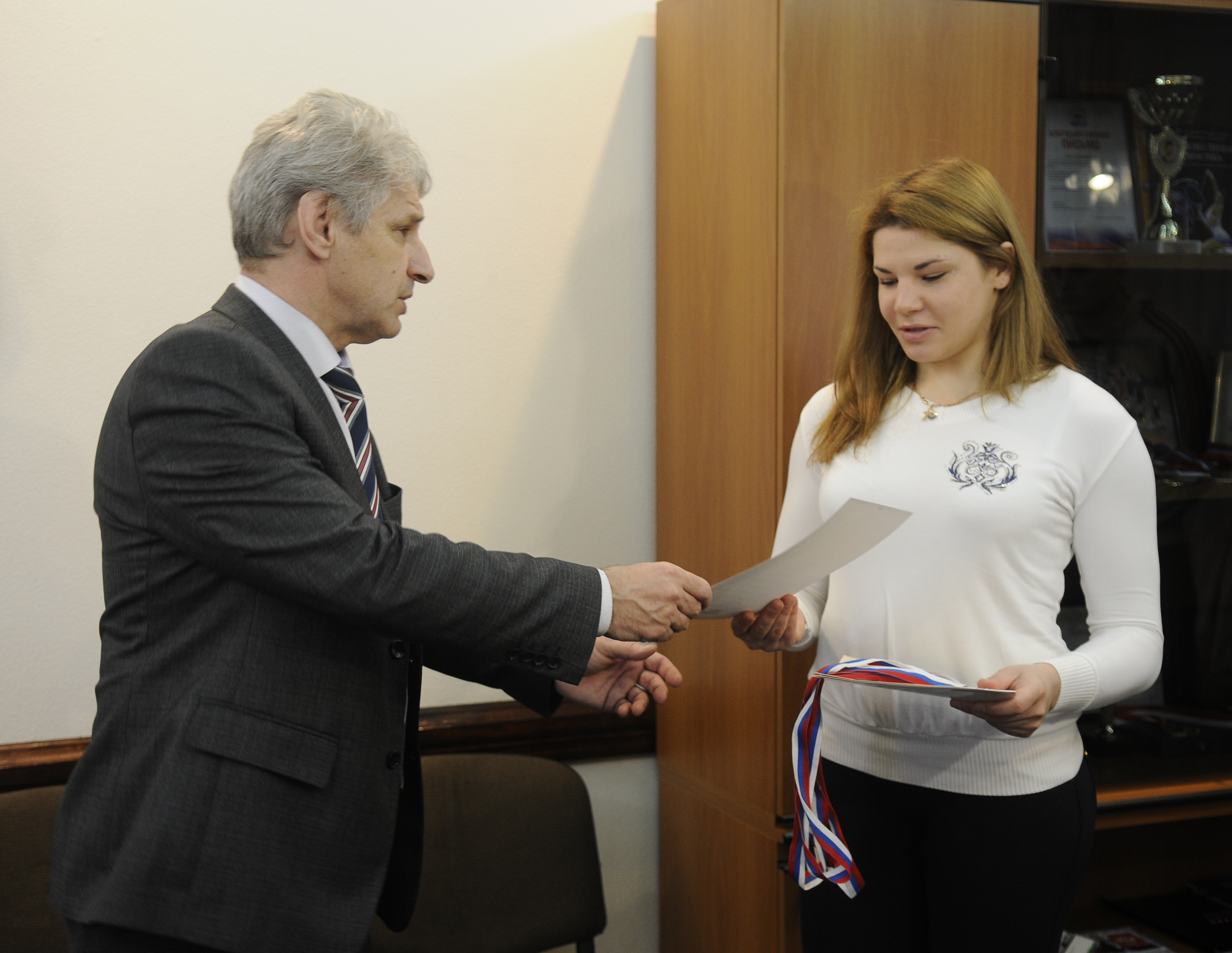 Георгий Шестак вручил грамоты тренеру крымской спортсменки и самой Илоне, которая стала победителем Первенства России среди юниоров и юниорок до 24 лет (1992-1998 гг.р.), взяла серебро в личном зачете и бронзу в абсолютной весовой категории на Первенстве России среди юниоров и юниорок до 22 лет (1994-1998 гг.р.), а также вошла в тройку на Чемпионате России по сумо среди мужчин и женщин.