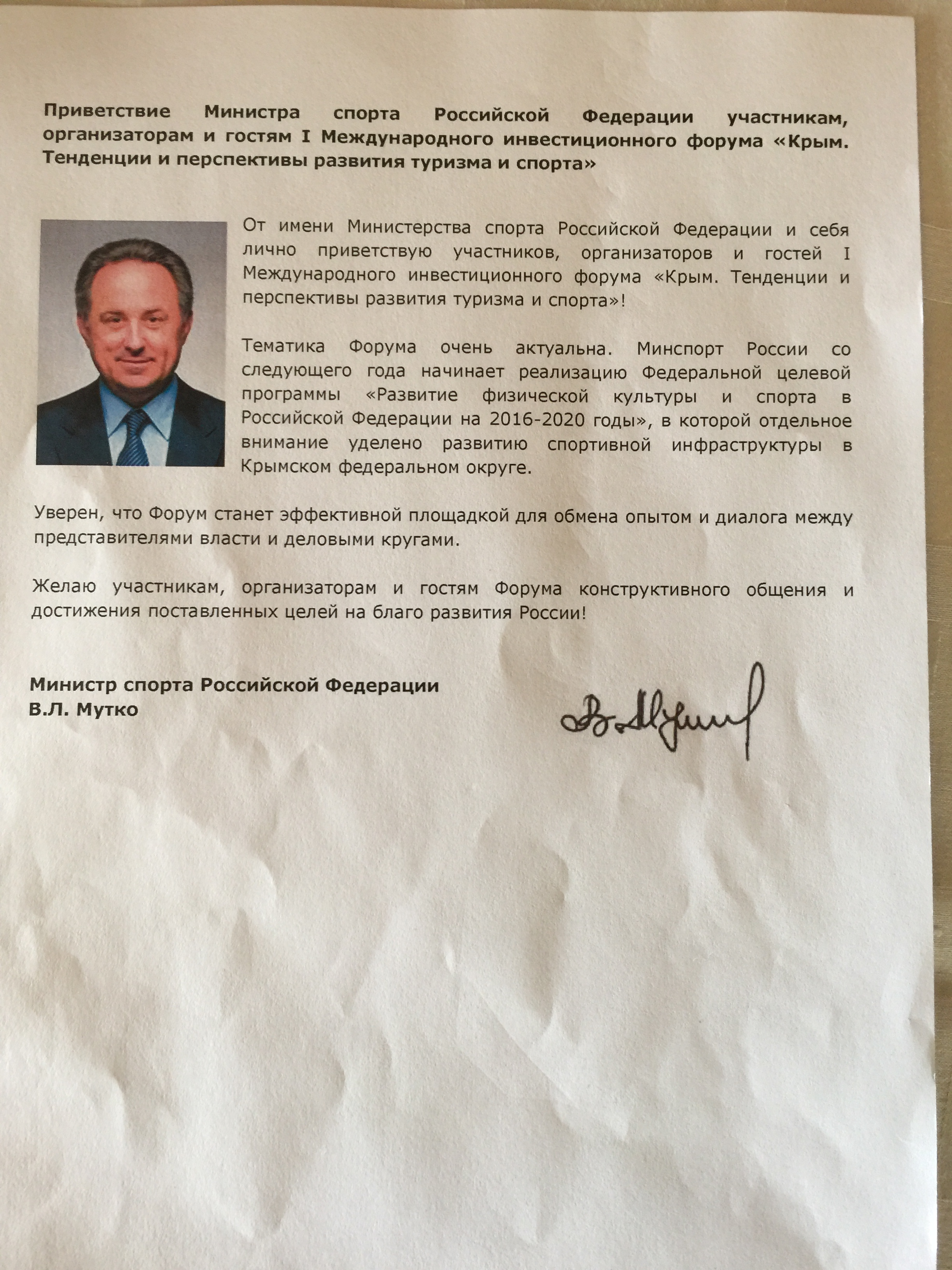 I Международный инвестиционный форум «Крым. Тенденции и перспективы развития туризма и спорта».
